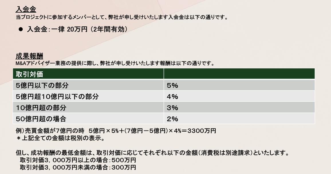 運営スキームやM&A成立に向けた標準的な流れ、報酬については以下に纏めましたので、ご参照ください。